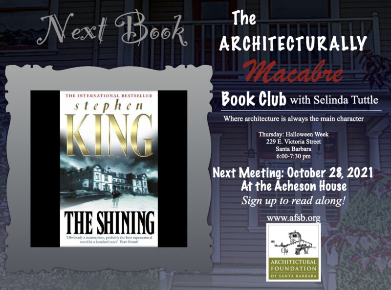 Register at Facebook for this FREE in person book club event at the historic Acheson House: the perfect venue to share the architecture of horror that is The Shining.