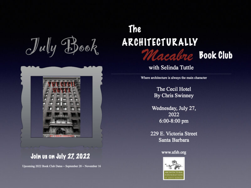 Gather with us for this FREE in person book club event at the historic Acheson House: the perfect venue to share the architecture of life, death, love, art and scandal at the Cecil Hotel.