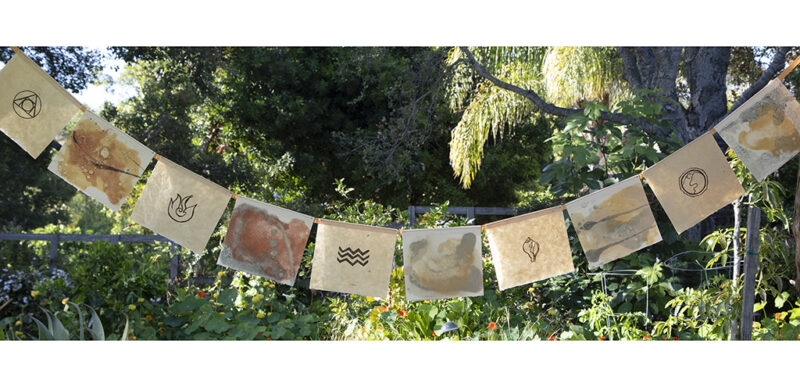 The Architectural Foundation of Santa Barbara is pleased to announce the upcoming exhibition Prayer Flags & A Tale of Longing, an exhibition by Mary Heebner. This exhibition is three-fold and consists of two-sided Prayer Flags, a spiral-bound artist’s book, A Tale of Longing and a booklet, Elemental Offerings, all originating with Heebner’s travels to Rumtek Monastery in Sikkim, India to see how prayer flags were made.