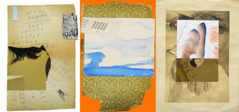 An on-going exploration of marrying paper and glue to form new, hybrid images, they document his process of constructing visual poems—evocative musings, distilled from the ephemera he collects: “I attempt to meld the textures, graphics, and echoes of old papers with marks that I make into a seemingly organic object. Sometimes, it turns out okay.”